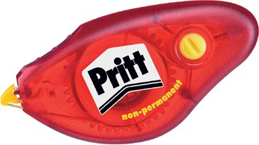 Klej Pritt w taśmie Non Permanent z żółtą końcówką przeznaczony jest do wielokrotnego przyklejania, odklejania i przyklejania z miejsca na miejsce nie pozostawiając plam. Posiada mechanizm regulacji napięcia taśmy. Użycie kleju gwarantuje nowoczesne, dokładne i czyste klejenie. Idealny do klejenia mniejszych powierzchni, rogów czy brzegów papieru. Bezpieczny dla dzieci. Długość taśmy: 10 m Szerokość taśmy: 8.4 mm