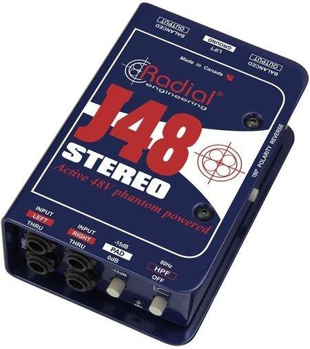 Radial J48 Stereo | 2-kanałowy, aktywny DI-Box zasilany z Phantom 48V, Active Direct Box Aktywny Direct Box Stereo z zasilaniem Phantom J48 stereo to wysokowydajny 2-kanałowy aktywny direct box do zastosowań w trasach koncertowych i profesjonalnych studiach nagraniowych, z możliwością obsługi …