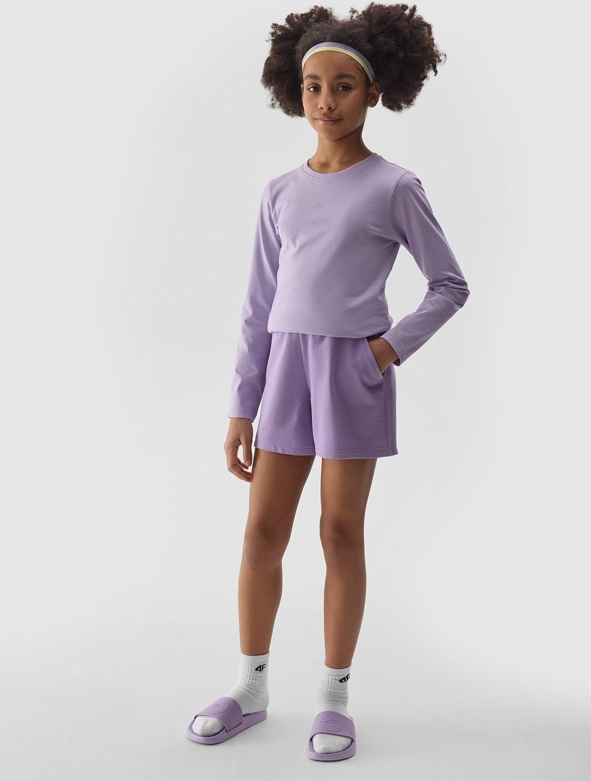 4F Spodenki dresowe dziewczęce - fioletowe 4FJRSS24TSHOF434-51S-164 Sugerowana cena detaliczna: 49.99 Spodenki dresowe dziewczęce idealnie sprawdzą się jako element zarówno casualowych, jak i sportowych stylizacji na co dzień. Posiadają krój regular, który wygodnie dopasowuje się do sylwetki oraz …