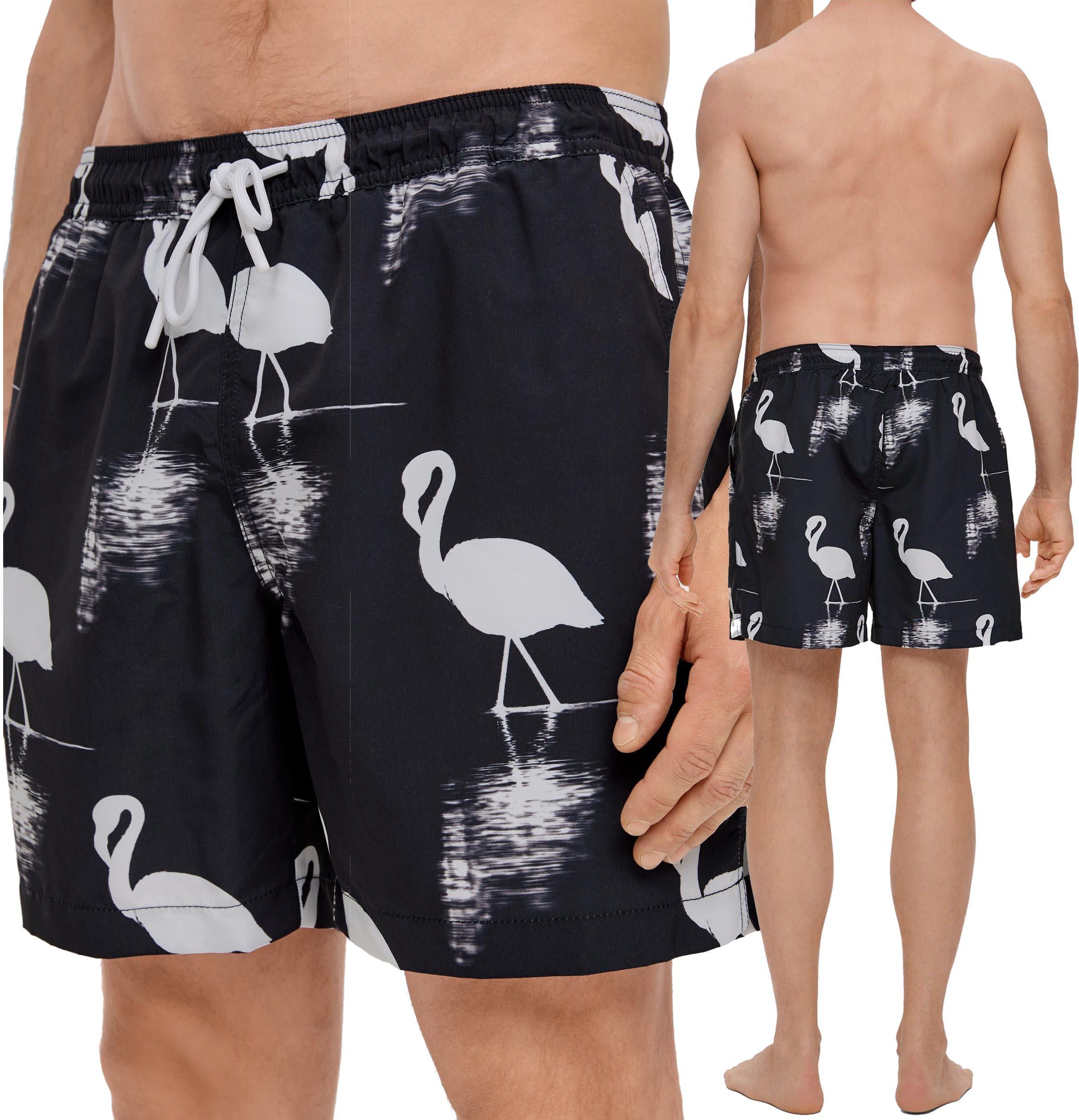 Spodenki kąpielowe męskie s.Oliver granatowe wzór flamingi - M Świdnica