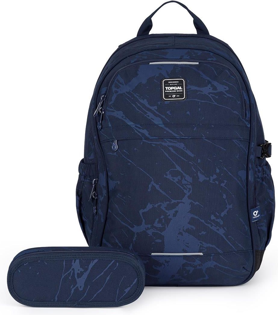Zestaw dla młodzieży składający się z plecaka i piórnika etui. Komplet szkolny składa się z produktów: RUBI 24033 - Ciemnoniebieski plecak młodzieżowy, ETUE 24033 - Piórnik szkolny
