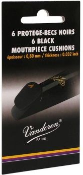 Naklejki Vandoren - 0,8 mm - czarne grube Naklejki na ustnik firmy Vandoren przeznaczone do klarnetów i saksofonów, przeciwdziałają uszkodzeniu ustnika zębami podczas gry oraz zapobiegają wibracjom pomiędzy ustnikiem, a zębami. Specjalna formuła pozwala na kilkakrotne przyczepianie i usuwanie naklejek, nie pozostawiając lepkich śladów kleju. Opakowanie zawiera 6 sztuk. Producent Vandoren Francja