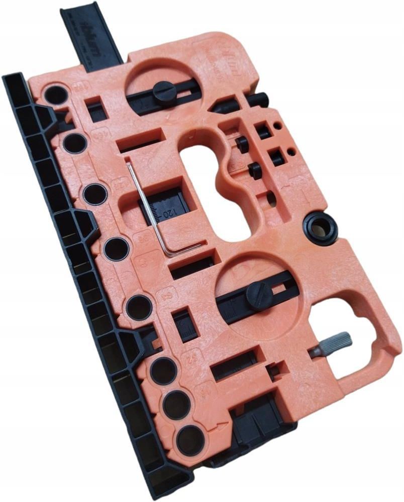 Wzornik produkcji BLUM model ZML.0040.02 wzornik do znakowania lub wiercenia otworów pod mocowania frontu wraz z relingiem, ściankę tylną oraz dno szuflady (tylko METABOX-wersja wciskana C15) jak również do okuć frontu z podnośnikiem AVENTOS ustawianie zderzaków za pomocą skali materiał: tworzywo/stal Możliwości obróbki AVENTOS MERIVOBOX LEGRABOX TANDEMBOX intivo TANDEMBOX antaro TANDEMBOX plus METABOX MOVENTO TANDEM SKŁAD ZESTAWU 1 x Matryca uniwersalna 1 x Ogranicznik głębokości wiercenia Ø 10 mm 1 x Ogranicznik głębokości wiercenia Ø 5 mm 1 x Ogranicznik głębokości wiercenia Ø 2,5 mm 1 x Punktak Ø 10 mm 1 x Klucz imbusowy 3mm