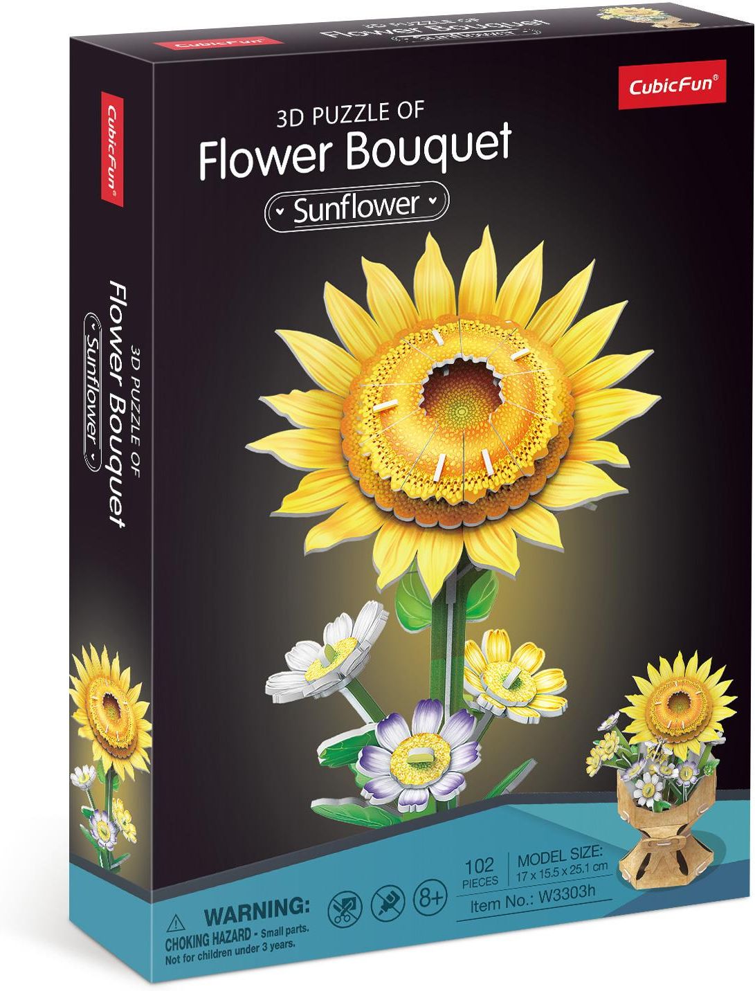 Puzzle 3D Bukiet kwiatów Słoneczniki Cubic Fun ✅ ✔️ Piękne kwiaty z nowej kolekcji trójwymiarowych puzzli 3D! Opakowanie pozwala na zbudowanie wyjątkowego i kolorowego bukietu słoneczników, który składa się ze 102elementów. Do składania nie są potrzebne dodatkowe elementy takie jak klej czy …