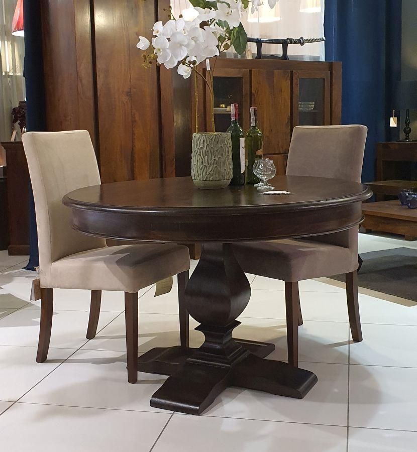 Szerokość: 120cm/Głębokość: 120cm/Wysokość: 76cm/ Kod produktu: 99-L121ML/Drewniany okrągły stół w klasycznym styluCechy mebla: * okrągły stół o wymiarach 120 x 120 x 76 cm * elegancka, frezowana noga * blat z szeroką listwą * całość wykonana z litego drewnaKlasyczny drewniany okrągły stół w kolorze ciepłego brązu. Blat o średnicy 120 cm zamocowano na ozdobnej rzeźbionej nodze, rozchodzącej się na samym dole na cztery stabilizujące odnogi. Stół bez możliwości powiększenia blatu w całości wykonano z litego drewna mango, barwionego na odcień ciepłego brązu. Drewno zostało zabezpieczone bezbarwnym lakierem o wykończeniu satynowym. Idealny mebel do niewielkich metrażowo jadalni i salonów, oszczędzający miejsce dzięki kolistej formie. Kolekcja: LONDON Materiał: 100% drewno mango Kolor: ciepły brąz Wykończenie: lakier satyna Jakość wykonania: najwyższa/Hi Quality Co wyróżnia nasze meble na tle konkurencji: meble wykonane z grubej litej deski konstrukcja z litego drewna całość mebla wykonana jest w 100 % z drewna (korpus, plecy, półki, dna szuflad) nie stosujemy wyrobów drewnopodobnych (płyt wiórowych, sklejki, płyt MDF i forniru) Są to elementy, na które rzadko zwraca się uwagę podczas zakupu mebli i których nie widać na zdjęciach, ale mają one jednak ogromny wpływ na trwałość i wytrzymałość mebli podczas ich użytkowania. Informacja dodatkowa: Drewno jest produktem w 100% pochodzenia naturalnego, w którym mogą występować delikatne przebarwienia, sęki lub pęknięcia. Wszystkie wymienione elementy są profesjonalnie wypełnione odpowiednią masą szpachlową, która w sposób estetyczny maskuje je i dodatkowo zabezpiecza mebel. Takie zjawiska są naturalną cechą drewna i jako takie nie podlegają reklamacjom. więcej informacji tutaj -->