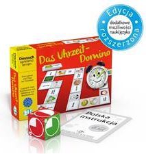 Das Uhrzeit-Domino - Twoja zabawa w naukę niemieckiego! Edukacyjna gra Das Uhrzeit-Domino to doskonały sposób na naukę godzin po niemiecku poprzez zabawę w domino. Kompletny zestaw zawiera nie tylko instrukcje gry w języku niemieckim, ale także w polskim oraz dodatkową kostkę, dzięki której gra staje się jeszcze bardziej urozmaicona.Das Uhrzeit-Domino to gra przeznaczona dla początkujących uczących się języka niemieckiego. Zadaniem graczy jest dopasowywanie elementów domino, z jednej strony z rysunkami zegarów pokazującymi różne godziny, a z drugiej - z napisami godzin. Prosta i fascynująca gra Proces gry jest prosty, ale zarazem fascynujący. Karty domino muszą być dobrze wymieszane i rozdane graczom. Grę rozpoczyna osoba, która posiada kartę z godziną dwunastą. Reszta graczy dokłada swoje karty tak, aby godzina przedstawiona na rysunku odpowiadała jej zapisowi słownemu. Jest też możliwość, że każda kolejna karta musi różnić się o godzinę, pół godziny lub kwadrans od poprzedniej. Celem gry jest pozbycie się wszystkich kart - wygrywa ten, kto to osiągnie jako pierwszy. Co oferuje Das Uhrzeit-Domino? Gra Das Uhrzeit-Domino to nie tylko nauka godzin, ale także ćwiczenie umiejętności językowych, takich jak rozumienie ze słuchu oraz mówienie po niemiecku. Dodatkowo, pomaga dzieciom w nauce odczytywania godzin na zegarze. Gra jest idealna do wykorzystania w nauczaniu języka niemieckiego w szkole podstawowej, szkołach językowych na poziomie A1 oraz w domu - podczas zabawy z rodzeństwem, przyjaciółmi czy na prywatnych lekcjach języka niemieckiego. Unikalne zalety gry Poza edukacyjnymi korzyściami, Das Uhrzeit-Domino pomaga rozwijać takie umiejętności jak pamięć, koncentracja i spostrzegawczość. To także doskonały sposób na skuteczne zapamiętywanie oraz naukę zdrowej rywalizacji. Dzięki Das Uhrzeit-Domino, nauka języka staje się znacznie łatwiejsza. W zestawie znajdują się instrukcje w języku polskim, które bez problemu pomogą Ci pokierować edukacyjną zabawę.W komplecie gry znajdują się 48 kartonowych elementów domino, broszura metodyczna w języku niemieckim, broszura metodyczna w języku polskim oraz dodatkowa kostka do gry - wszystko to, by nauka języka niemieckiego była prostsza i bardziej przyjemna. EAN: 9788853628145