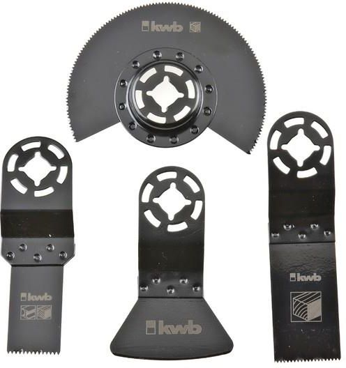 Zestaw podłogowy i instalacyjny, 4 sztuki Piła CV: 28 x 48 mm - Piła BIM: 22 x 48 mm - Piła HSS: 87 mm - Szpatułka: 26 x 52 mm Dokładne, równe przycinanie ościeżnic podczas układania parkietu, skracanie aluminiowych szyn łączących oraz równoczesne przycinanie wystających gwoździ lub rur miedzianych …