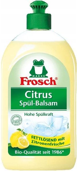 FROSCH ecologial 500ml cytrynowy płyn do mycia naczyń Ekologiczny płyn do naczyń o zapachu cytrynowym Nasz ekologiczny płyn do naczyń o zapachu cytrynowym to doskonałe rozwiązanie dla wszystkich, którzy pragną utrzymać swoje naczynia lśniąco czyste. Zawiera on wyciąg ze skórek cytryny, który skutecznie usuwa tłuszcz i inne zanieczyszczenia. Dzięki neutralnemu pH produkt jest delikatny dla skóry i nie powoduje jej wysuszenia. Pozostawia lśniąco czyste naczynia Działanie naszego płynu sprawi, że Twoje naczynia będą błyszczeć czystością. Skutecznie usuwa tłuszcz oraz wszelkie zabrudzenia, pozostawiając jednocześnie przyjemny zapach cytrynowy. Nie musisz się martwić o trudne plamy czy brudne talerze - ten płyn poradzi sobie z każdym zadaniem. Chroni skórę przed wysuszeniem Pielęgnacja rąk podczas mycia naczyń jest równie ważna jak sam proces czyszczenia. Nasz płyn został stworzony tak, aby chronić Twoją skórę przed nadmiernym wysuszeniem. Dzięki temu możesz cieszyć się pięknie umytymi naczyniami bez obawy o szorstkie i spierzchnięte dłonie. Produkt ekologiczny i dermatologicznie testowany Nasz płyn do naczyń został przyjazny dla środowiska, dzięki czemu możesz mieć pewność, że korzystając z niego, dbasz również o naszą planetę. Dodatkowo produkt jest dermatologicznie testowany, co oznacza, że utrzymuje odpowiednie nawilżenie skóry podczas codziennego użytkowania. Wybierz nasz ekologiczny płyn do naczyń i ciesz się lśniąco czystymi naczyniami bez obawy o swoje zdrowie i środowisko. Uwaga! Zdjęcie poglądowe. Grafika na opakowaniu może różnić się względem zdjęć w zależności od partii.