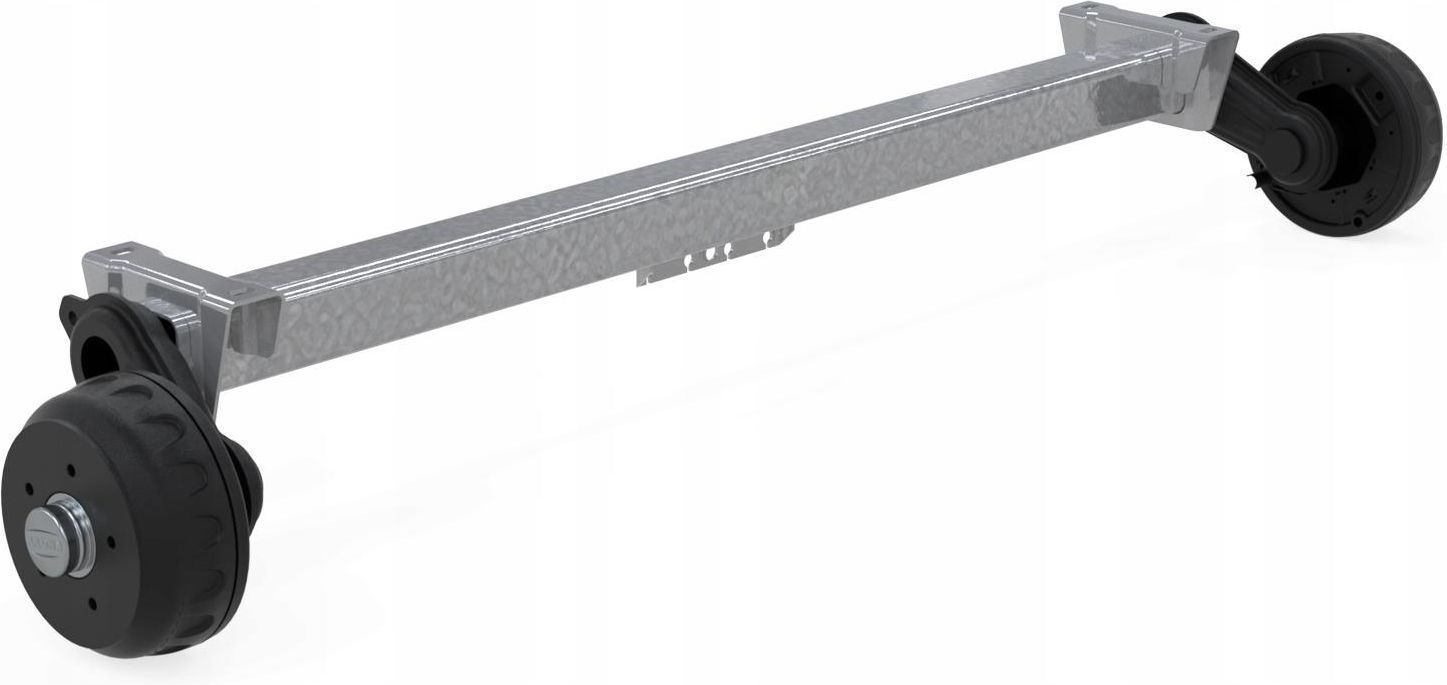 Oś hamowana KNOTT VGB13 1350 kg 1450 mm 1950 mm 5x112 mm Oryginalny produkt marki: KNOTT Oś VGB13 z rozstawem śrub 5x112. Maksymalny udźwig wynosi 1350 kilogramów. Rozstaw montażowy to 1450 mm, a odległość między piastami to 1950 mm. Oś wyposażona w mechaniczny układ hamulcowy 200x50/10 cali, zapewniający pewne hamowanie. Oś hamowana z maksymalnym udźwigiem 1350 kg. Model VGB13 renomowanego producenta KNOTT. Uresorowane gumowe drążki skrętne, które wpływają na zwiększenie bezpieczeństwa jazdy. Rozstaw śrub to 5x112. Odległość między otworami montażowymi wynosi: 1450 mm, a odległość między piastami 1950 mm. Piastobęben z automatem cofania 200x50/10". Ważne! DMC 1350 kg Rozstaw otworów mocujących 1450 mm Rozstaw piast 1950 mm Rozstaw śrub na koła 5x112 mm