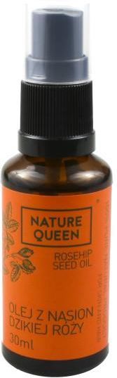 Olej z nasion dzikiej róży to wyjątkowy, całkowicie naturalny kosmetyk o cudownych właściwościach pielęgnacyjnych, nierafinowany i pozyskiwany w wyniku tłoczenia na zimno. Posiada wyrazisty jasno żółto-pomarańczowy kolor oraz delikatny zapach owoców róży. Jest super lekki i nietłusty, a także posiada wysoką zawartość przeciwutleniaczy oraz zdolność przenikania do głębszych warstw skóry. Zawarte w nim witaminy C i A doskonale stymulują produkcję kolagenu, czym przyczyniają się do lepszej ochrony przed zmarszczkami. Dzięki małym cząsteczkom witaminy A może ona przenikać w głębsze warstwy skóry i zwiększać poziom nawilżenia oraz redukując oznaki starzenia cery. Stanowi bogate źródło witamin – E, B1, B2, K i PP. Może być nakładany na okolice oczu, szyję, dekolt, jak i na całe ciało. Działanie: Zwiększa metabolizm komórek i chroni przed szkodliwym działaniem wolnych rodników, Regeneruje i kondycjonuje skórę, Koryguje defekty skóry, Zmniejsza blizny i zmarszczki i rozstępy, Doskonale nawilża, Przynosi ukojenie skórze suchej i łuszczącej się Zastosowanie: Olej z nasion dziskiej róży posiada wiele metod zastosowania: jako regenerujący olejek na twarz, baza pod makijaż lub jako dodatek do kremu nawilżającego. Polecany dla kobiet w ciąży jako kuracja przeciwdziałająca powstawaniu rozstępom oraz redukująca już powstałe. Olej z nasion dzikiej róży jest delikatny, o niskiej stabilności, dlatego powinien być przechowywany w chłodnym miejscu. W celu przedłużenia jego trwałości i świeżości został wzbogacony kompleksem witaminy E. Pakowany w ciemne szkło farmaceutyczne, w celu ochrony przed czynnikami zewnętrznymi i promieniami UV.