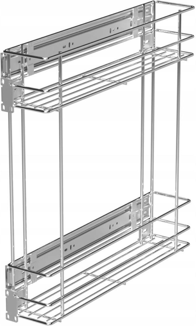 Kosz MINI STANDARD 480 mm 2 półki boczny Dane techniczne Wysokość: 480mm Szerokość: 150-200 mm Głębokość: 470 mm Kolor: Chrom Ilość Półek: 2 Max Obciążenie półki: 15 kg Kosz MINI STANDARD 480 mm 2 półki boczny Kosze typu cargo potrafią odmienić oblicze każdej kuchni przeobrażając ją w jeszcze bardziej funkcjonalne pomieszczenie, przyjazne dla użytkownika. To idealne rozwiązanie szczególnie w małych kuchniach, gdzie każdy centymetr jest na wagę złota. W miejscach o niestandardowych wymiarach, kosze kargo sprawdzą się równie doskonale. Zastosowanie tych koszy w kuchni w sposób znaczący poprawi ergonomię pracy. Czym jest kosz cargo? Najprościej rzecz ujmując, to wysuwane kosze na szynach. Może wydawać się to proste i banalne, ale niejednokrotnie najprostsze rozwiązania są najlepsze. Kosze są umieszczone na wytrzymałych prowadnicach, które charakteryzują się płynnym i miękkim ruchem. Kosze wysuwają się całe-z całą swoją zawartością, ułatwiając nam dostęp do dowolnie umieszczonego w nim produktu. Dzięki nim, wyeliminujemy również trzaskanie, bo kosze posiadają funkcję cichego domyku. Kosze Cargo to droższa alternatywa zwykłych szuflad i szafek. Jednak warto ponieść wyższe koszty za wygodę i funkcjonalność każdego dnia. Cena jest uzależniona od rozmiarów koszy. Odpowiadając na pytanie- Czy warto?- WARTO! To proste rozwiązanie całkowicie zmienia sposób korzystania z kuchni. Utrzymanie porządku i wykorzystanie maksymalnie wolnej przestrzeni nigdy nie było tak proste. Zalety Materiał: metal Prosty montaż Polski producent Wzrost funkcjonalności mebli Ułatwienie segregacji i dostępu do składowanych produktów Możliwość wykorzystania wąskich przestrzeni w kuchni Łatwy i wygodny dostęp do całej zawartości szafki Komfortowa i szybsza praca w kuchni