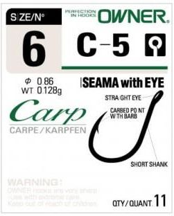 Owner haczyki Carp Iseama C5 4 HO-C504 Legendarne haki karpiowe Iseama, podstawowy hak w wyposażeniu każdego doświadczonego łowcy karpi. Rozmiar haka: 4 Ilość w opakowaniu: 10 sztuk HO-C5 - kolor ciemnostalowy / Black Nickel Profil: z zadziorem Materiał: stal węglowa - kuty Hi-Carbon Wiązanie żyłki: z uszkiem