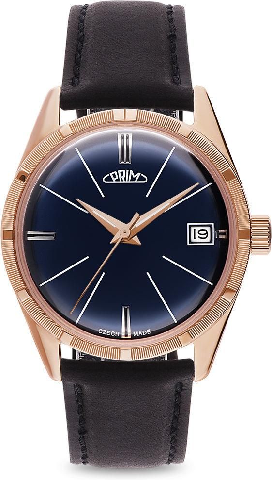 Damski automatyczny klasyczny stalowy wodoszczelny zegarek PRIM Repre Automatic W02C.13164.D - stalowa koperta, skórzany pasek, niebieska tarcza czasomierza, datownik, klasa szczelności 50M, mineralne szkło. Japoński mechanizm automatyczny