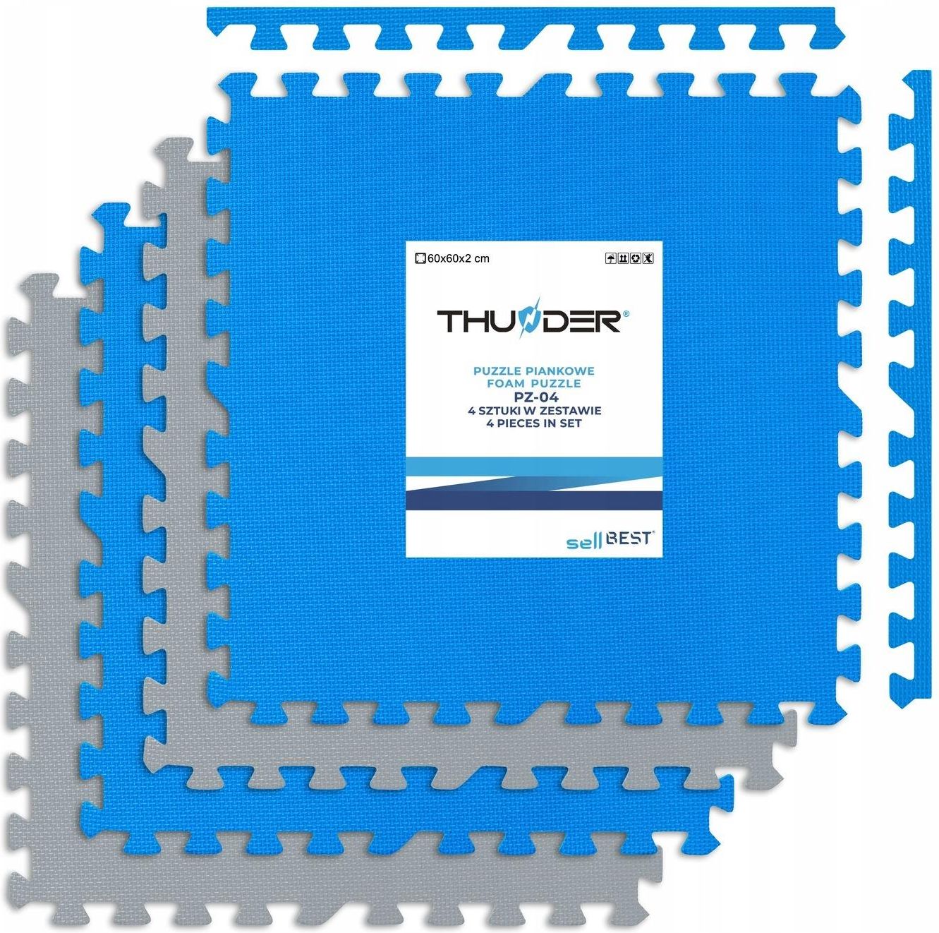 Mata ochronna PZ-04 marki THUNDER 60 × 60 cm – zestaw 4 szt. Mata ochronna PZ-04 marki ⚡THUNDER®⚡ to wysokiej jakości piankowa podłoga, która skutecznie zabezpiecza powierzchnie przed uszkodzeniami mechanicznymi, zarysowaniami i ścieraniem. Specyfikacja produktu: ✅ Kolor: niebiesko-szary ✅ Kształt: płyta z zakładkami w formie puzzla ✅ Wymiary pojedynczego elementu: 60 × 60 × 2 cm ✅ Wymiary całego zestawu: 120 x 120 cm ✅ Powierzchnia całkowita: 14,4 m² ✅ Izolacja termiczna: chroni przed zimnym podłożem ✅ Ochrona podłogi: zabezpiecza przed zarysowaniami i wgnieceniami ✅ Wodoodporność: łatwość czyszczenia i odporność na wilgoć ✅ Kompaktowe przechowywanie: po złożeniu zajmuje niewiele miejsca Zalety: ✅ Stabilność i trwałość – mata posiada fazowane krawędzie, które zapobiegają jej przesuwaniu się podczas ćwiczeń. ✅ Materiał: pianka EVA Łatwy montaż – system łączenia na zakładki pozwala na szybkie i bezproblemowe ułożenie podłogi bez konieczności użycia kleju. ✅ Amortyzacja i redukcja hałasu – mata skutecznie tłumi drgania oraz hałas generowany przez sprzęt treningowy. ✅ Antypoślizgowa powierzchnia – zapewnia bezpieczeństwo i wygodę podczas ćwiczeń. ✅ Wodoodporność i łatwość czyszczenia – dzięki zwartej strukturze nie chłonie wilgoci i jest prosta w utrzymaniu czystości. ✅ Bezpieczna i hipoalergiczna – wykonana z wysokiej jakości pianki EVA, wolnej od Bisfenolu A. Nie gromadzi kurzu ani roztoczy, co czyni ją idealnym wyborem dla alergików. ✅ Uniwersalne zastosowanie – świetnie sprawdzi się jako mata do fitnessu, jogi, a także jako podkład ochronny pod rower stacjonarny, bieżnię czy atlas treningowy. Wodoodporność i łatwość czyszczenia: ✅ Prosta w czyszczeniu ✅ Odporna na wchłanianie wody ✅ Szybko wysycha Praktyczność i funkcjonalność: ✅Nasze maty PZ-04 posiadają dwie różne powierzchnie – gładką i teksturowaną, co pozwala dopasować je do indywidualnych potrzeb użytkownika. Zapewniają nie tylko ochronę podłoża, ale także komfort i stabilność podczas intensywnych treningów z ciężarami. Uniwersalne zastosowanie: Modułowy system mat PZ-04 pozwala na pokrycie dowolnej powierzchni, co sprawia, że idealnie sprawdzą się w: ✅ Domowej siłowni ✅ Klubach fitness ✅ Salach gimnastycznych i crossfitowych Zestaw zawiera: ✅Piankowe Puzzle: 4x ✅Zaczepy do puzzli: 8x Zadbaj o ochronę swojej podłogi i komfort treningu z matą PZ-04 THUNDER!
