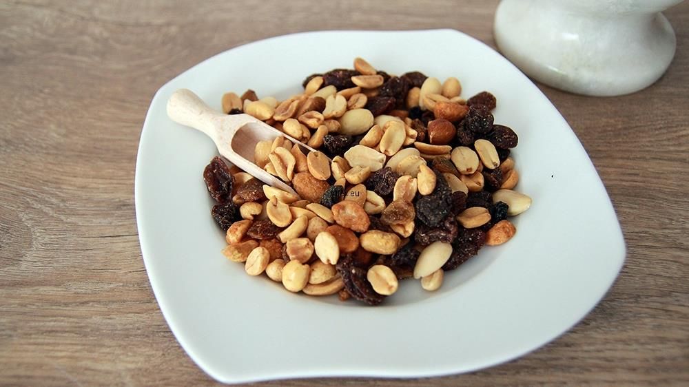SKŁAD W RÓŻNYCH PROPORCJACH:RODZYNKI,NERKOWIEC,LASKOWY ORZECH,MIGDAŁ,MIGDAŁ BLANSZOWANY,ORZECHY ZIEMNE PRAŻONE. Wartości odżywcze w 100 gramach produktu: Energia 485,0 kcal/ 2030 kJ Białko 13,6 g Węglowodany 30,4 g Tłuszcz 35,2 g