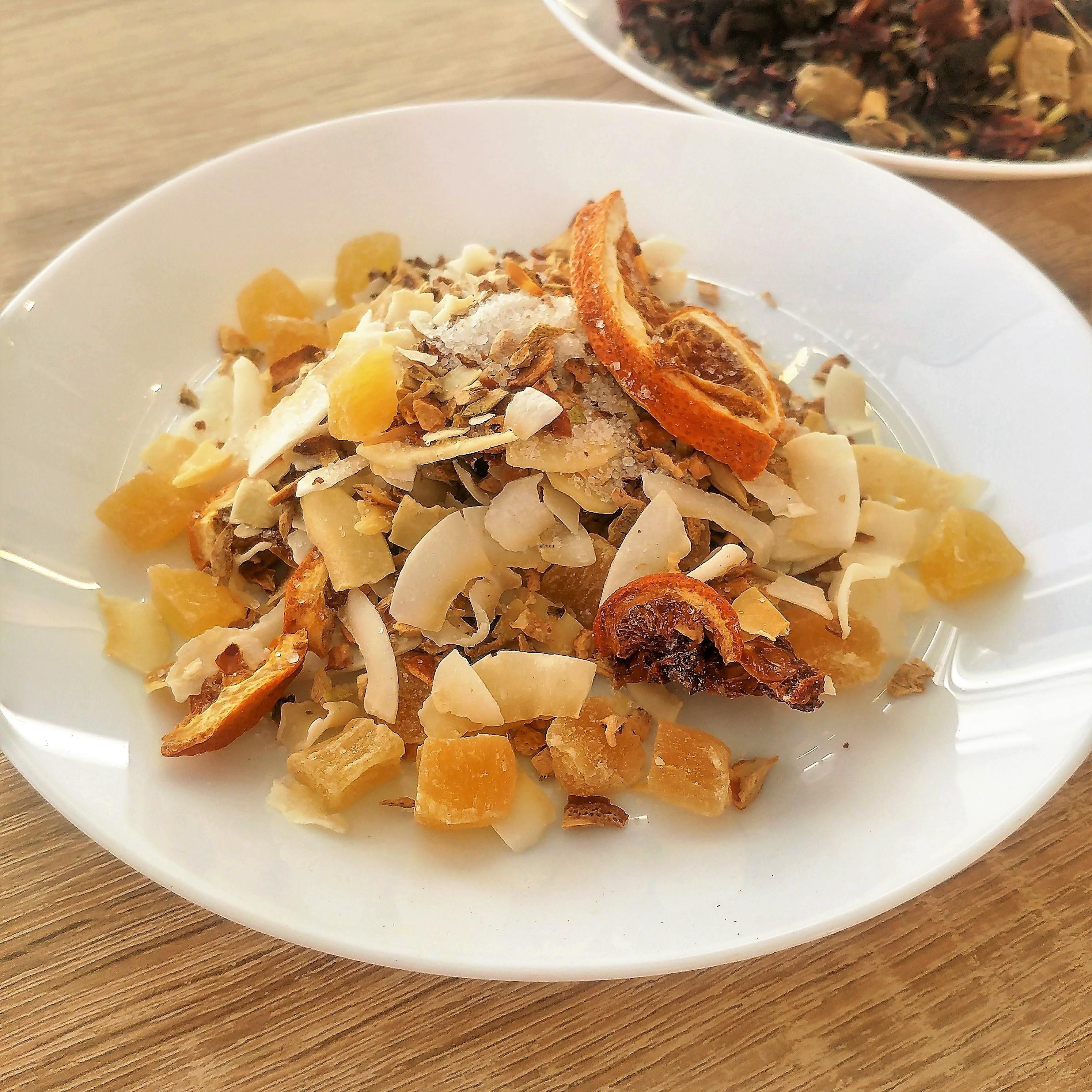 Pinacolada to znany drink składający się z kokosa i ananasa. W wersji nalewkowej, mieszanina zawiera chipsy z kokosa oraz ananasa kandyzowanego. Dodatkowo skórkę pomarańczy i cytryny, cukier oraz aromaty. Produkt do samodzielnego warzenia. Z 500 g mieszanki powstają 2 l nalewki. Dostępne także 100 g produktu.