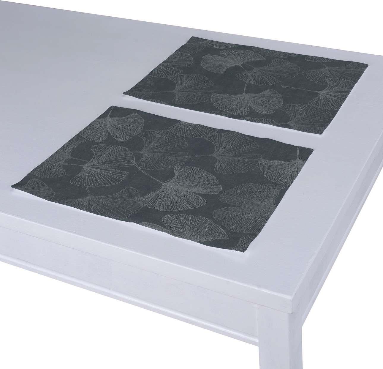 Dekoria.pl Podkładka 2 sztuki, szaro-srebrne liście miłorzębu na grafitowym tle, 40 x 30 cm, Venice Świebodzice
