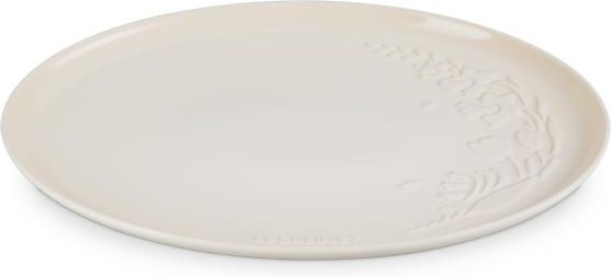 Kamionkowy talerz do serwowania z kwiatowymi tłoczeniami, odporny na wysoką temperaturę, zmywarkę i mikrofalę.