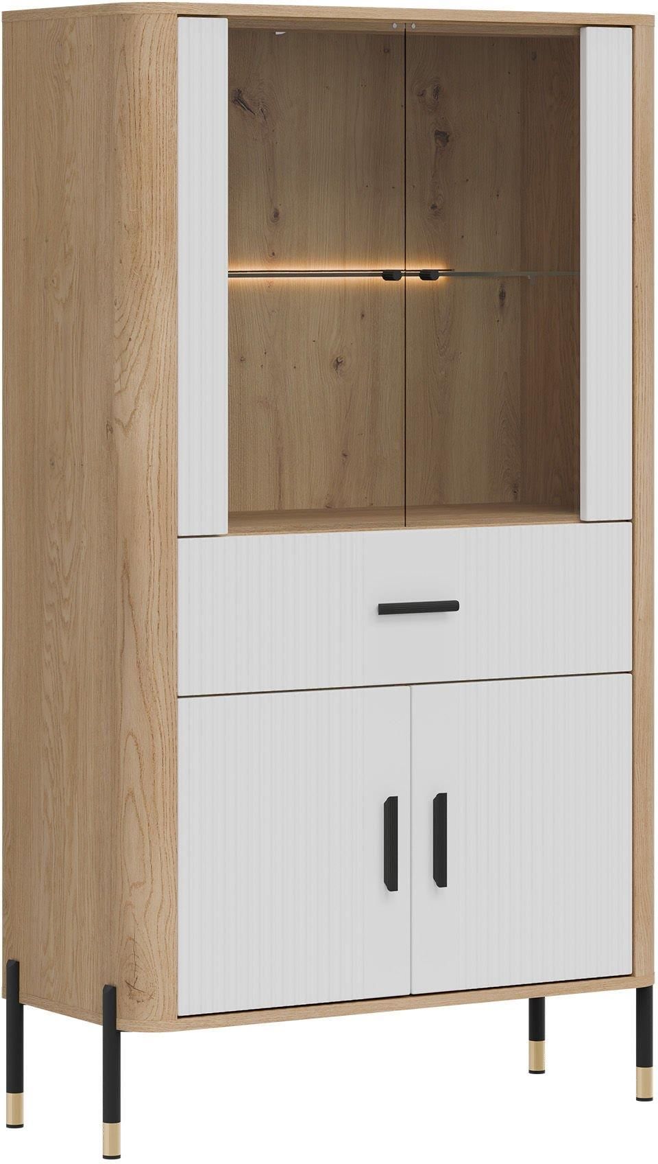Liveo Witryna Niska Dante Dt12 4D1S Dąb Cremona Torro / Biały Mat Czarny Uchwyt 165Cm Świebodzice