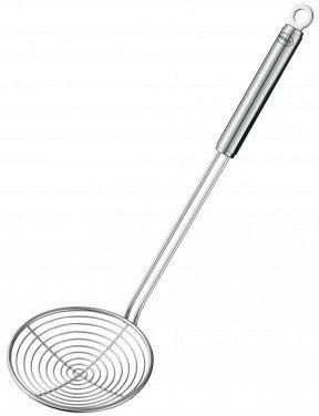 Roesle - Łyżka cedzakowa 14cm Okrągły cedzak druciany o średnicy ? 14 cm Duży rozstaw drutów zapewnia szybkie i sprawne odprowadzanie tłuszczu. Waga 0,2 kg Wysokość 110 mm szerokość 140 mm Długość 405 mm Waga bez opakowania: 0,21 kg Długość bez opakowania: 40,5 cm Szerokość bez opakowania: 14 cm Wysokość bez opakowania: 11 cm Materiały: Stal nierdzewna 18-10 Powierzchnie: matowe Kontakt z żywnością: Tak Kolekcja: Seria Rundgriff Średnica części funkcjonalnej: 14 cm Nadaje się do zmywarki: Tak Długość użytkowa: 14 cm Długość rączki: 12 cm Średnica rączki: 1,9 cm