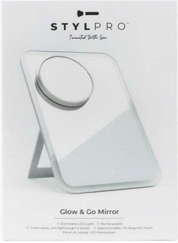 STYLPRO GLOW & GO ™ to lekkie, smukłe i przenośne lustro, wyłożone ściemnialnymi panelami świetlnymi LED dla idealnego oświetlenia podczas nakładania makijażu. Dzięki składanej, płaskiej podstawce, portowi ładowania Micro-USB i ochronnemu etui, możesz zabrać nasze lusterko ze sobą wszędzie. Zawiera magnetyczną nakładkę 10x powiększającą. OFF YOU GLOW! Niezależnie od tego, czy jesteś w świetle, czy w domu, STYLPRO GLOW & GO ™ jest idealnym rozwiązaniem w każdej sytuacji makijażowej. Dzięki ściemnianym panelom świetlnym LED regulowanym za pomocą jednego przycisku, zawsze będziesz miał odpowiednie oświetlenie dla nieskazitelnej aplikacji. Skoncentruj się na szczegółach dzięki naszej magnetycznej przystawce do lusterka o 10-krotnym powiększeniu, podkreślając pewne obszary bez pozostawiania śladów na powierzchni lustra. GLOW & GO ™ posiada port ładowania micro-USB, etui ochronne i składaną podstawkę, co oznacza, że nie ma miejsca, gdzie nie można go zabrać. Więc, dalej, dalej świeć! Sposób użycia: 1. Upewnij się, że lustro jest w pełni naładowane, wkładając kabel Micro-USB do portu z tyłu lustra i podłączając do źródła zasilania przyjaznego dla USB. 2. Przesuń przełącznik do pozycji "ON". Podczas ładowania lampka kontrolna zmieni kolor na czerwony. 3. Naciśnij przycisk na powierzchni lustra, aby włączyć oświetlenie. Dotknij i przytrzymaj przycisk, aby dostosować ustawienia ściemnianego światła. W przypadku lustra wolnostojącego, wyciągnij podstawę z tyłu i umieść poziomo lub pionowo na płaskiej powierzchni. 5. Aby powiększyć określony obszar, przymocuj magnetyczną przystawkę do lustra na jego powierzchni. Pełne naładowanie lusterka może potrwać do 3 godzin. Przechowywać w ochronnym etui dla bezpiecznego przechowywania.