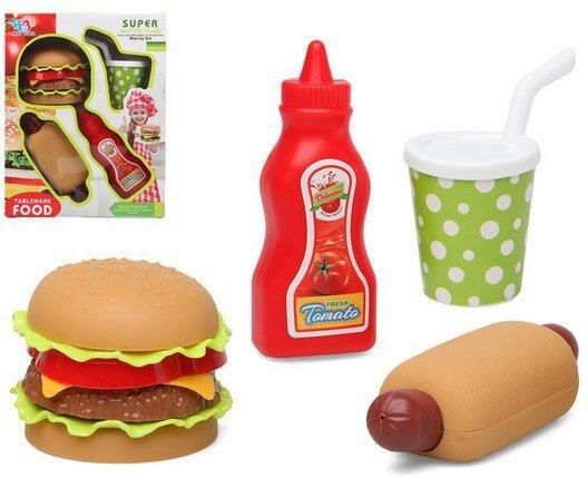 Zestaw dziecięcy jedzenie Fast food Spędź przyjemne popołudnie z pociechą odkrywając różne kultury kulinarne.W zestawie znajdziesz niezbędne elementy potraw.Dane techniczne: Wzór: hamburger, frytki, ketchup Głębokość: 5,5cm, Materiał: plastik, Szerokość: 28,5cm, Wysokość: 17cm,