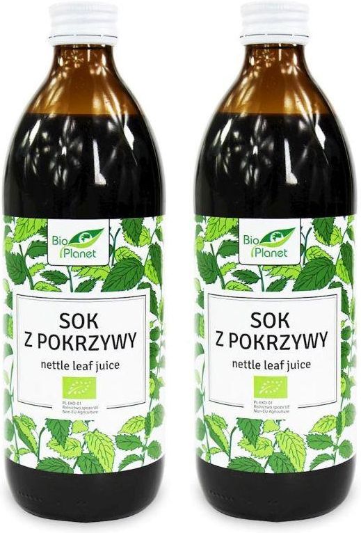 BIOPLANET Sok z pokrzywy Bio ZESTAW 2 x 500 ml Sok wyprodukowany z ekstraktu liści pokrzywy.