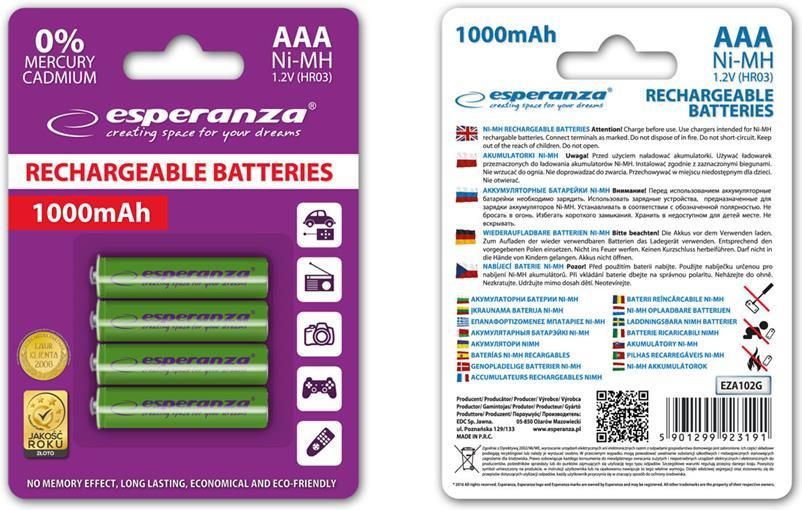 Esperanza Ni-MH AAA 1000MAH 4 szt. (EZA102G) Świecie