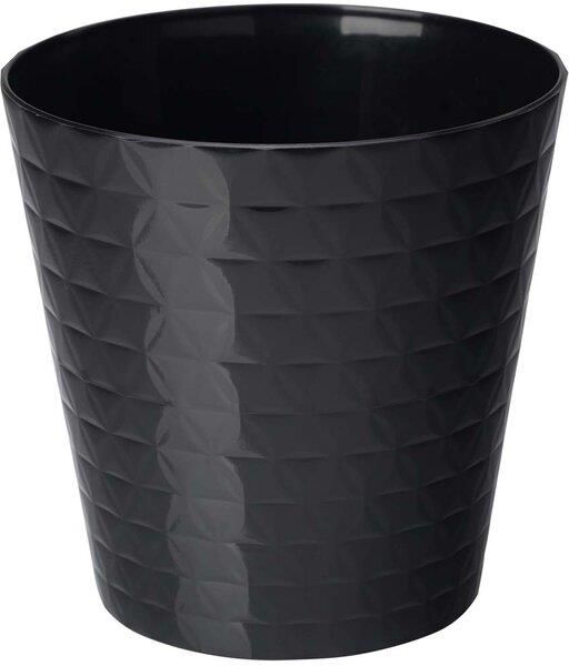 Osłonka Diament Petit czarna 19 cmOdrobina paryskiego szyku w Twoim domu. Elegancka, połyskująca powierzchnia, ale z odrobiną miejskiego pazura przyciągnie każde spojrzenie odwiedzającego Was gościa.Wysokiej jakości tworzywo sprawi, że będziecie cieszyć się pięknym widokiem przez miesiące, a nawet lata.Polski produkt, dostępny w wielu kolorach i rozmiarach do wyboru, sprawi że będzie pasować do każdego wnętrza.