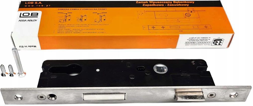 Zamek do drzwi 92/30 wpuszczany na wkładkę bębenkową LOB Z9230B-22 Producent: Lob | Kod producenta: 01624390 | Indeks: 1000131420 --------------------------------------------- Kupujesz u autoryzowanego dystrybutora marki Kupując u nas masz pewność, że otrzymasz nowy, oryginalny produkt, z oficjalnej dystrybucji, z gwarancją realizowaną na terenie Polski. --------------------------------------------- Opis produktu Zamki wpuszczane przeznaczone są do zamontowania w środku drzwi, we wcześniej przygotowanych do tego otworach. Po zamknięciu drzwi rygiel i zapadka zamka wchodzą do okucia/zaczepu zamontowanego w futrynie. Parametry techniczne: zamek uniwersalny - możliwość zmiany z lewego na prawy. wykonany z wysokiej jakości stali. przeznaczenie: stolarka aluminiowa, PCV W zestawie: - zamek --------------------------------------------- Dane techniczne Rodzaj zamka: Zamek wpuszczany Rodzaj zamknięcia: na wkładkę bębenkową Rodzaj drzwi: do drzwi lewych i prawych Rozstaw (wym. A): 92 Dormas (wym. B): 30 Wysokość czoła (wym. C): 240 Szerokość czoła (wym. D): 22 Głębokość puszki (wym. E): 47 Wysokość puszki (wym. F): 174 Liczba kluczy w zestawie: brak Orzech: Kwadrat 8 mm Wykończenie czoła zamka: Nikiel Zastosowanie: drzwi profilowe