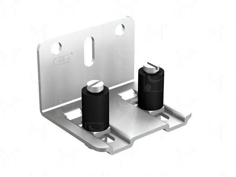 Regulowany prowadnik dolny do przykręcenia. Dedykowany do szyn 25x17 / 30x30 mm Wysokość całkowita 43 mm. Średnica rolki Ø13 mm Masa 0,12 kg/szt. Kątownik - stal nierdzewna Rolki - guma.
