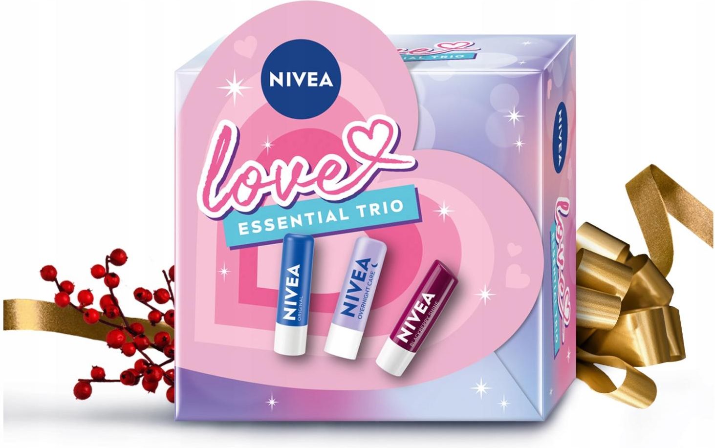 NIVEA Essential Trio Świąteczny Zestaw kosmetyków NIVEA Overnight Care Pielęgnujaca pomadka do ust, 4,8g NIVEA Blackberry Shine Pielęgnująca pomadka do ust, 4,8g NIVEA Original Pielęgnująca pomadka do ust, 4,8g 30 mlt Szukasz pomysłu na upominek dla niej? Postaw na świąteczny zestaw kosmetyków …