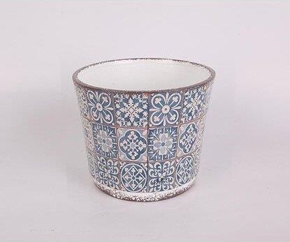 Osłonka Sewilla ceramiczna biały/niebOsłonka w efektowny wzór będzie oryginalnym elementem aranżacji wnętrz.Wzór mozaikiPowierzchnię osłonki ozdabia mozaikowy wzór w odcieniach koloru niebieskiego i bieli. Osłonka będzie się ładnie prezentować w połączeniu z wnętrzami w stylu boho czy skandynawskim a także tymi minimalistycznymi nowoczesnymi.Osłonka dekoracyjnaPamiętaj, że osłonka pełni funkcję dekoracyjną. Aby uniknąć zbierania się wody na jej dnie, należy zastosować doniczkę wewnętrzną lub wysypać dno osłonki warstwą drenującą, np. keramzytem..