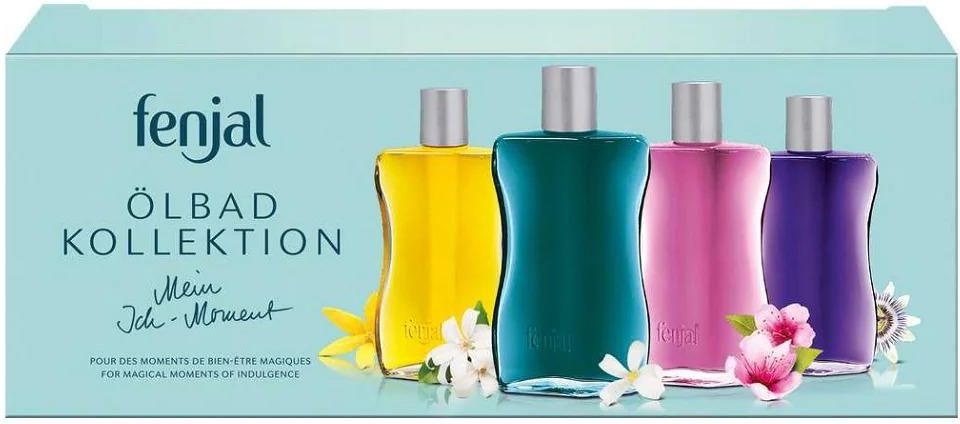 Czy luksusowe kąpiele są Twoim sposobem na całkowity relaks?? Mamy coś idealnego… Ten zestaw upominkowy zawiera cztery miniaturowe olejki do kąpieli – Classic, Intensive i dwa ekskluzywne olejki – Moringa i Passionflower. Idealny prezent na relaks! Zestaw zawiera: Olejki - Moringa, Classic, Intensive i Passionflower 4x50ml Nadają się do normalnej, suchej i bardzo suchej skóry Fenjal Creme Bath Oil Moringa: AQUA, MIPA-LAURETH SULFATE, SODIUM LAURETH SULFATE,PARFUM, PEG-18 CASTOR OIL DIOLEATE, GLYCERIN, GLYCINE SOJA OIL, COCAMIDOPROPYL BETAINE, PROPYLENE GLYCOL, PEG-200 HYDROGENATED GLYCERYL PALMATE, SODIUM BENZOATE, MORINGA OLEIFERA SEED OIL,SODIUM CHLORIDE, PEG-7 GLYCERYL COCOATE, CITRIC ACID, BENZOPHENONE-4, POLYQUATERNIUM-7, TOCOPHEROL, HELIANTHUS ANNUUS SEED OIL, CI 15985, CI 47005. Fenjal Creme Bath Oil Classic: GLYCINE SOJA OIL, C12-13 PARETH-3, PARFUM, CITRONELLOL, LIMONENE, TOCOPHEROL, BENZOTRIAZOLYL DODECYL P-CRESOL, BENZYL ALCOHOL, LINALOOL, COUMARIN, HELIANTHUS ANNUUS SEED OIL, ALPHA-ISOMETHYL IONONE, ANISE ALCOHOL, CITRAL, AMYL CINNAMAL, CI 61565. Fenjal Creme Bath Oil Intensive: AQUA, MIPA-LAURETH SULFATE, SODIUM LAURETH SULFATE, PEG-18 CASTOR OIL DIOLEATE, PARFUM. GLYCERIN, GLYCINE SOJA 11O COCAMIDOPROPYL BETAINE, PROPYLENE GLYCOL,PEG-200 HYDROGENATED GLYCERYL PALMATE, LAURETH-2, PERSEA GRATISSIMA OIL, SODIUM BENZOATE, GUARHYDROXYPROPYLTRIMONIUM CHLORIDE, SODIUM CHLORIDE, PANTHENOL, PEG-7 GLYCERYL COCOATE. CITRIC ACID,BENZOPHENONE-4, BUTYROSPERMUM PARKII BUTTER, TOCOPHEROL, HELIANTHUS, ANNUUS SEED OIL, COUMARIN,GERANIOL HEXYL CINNAMAL, BENZYL ALCOHOL, LINALOOL, CI 17200, CI 42090. Fenjal Creme Bath Oil Passonflower : AQUA, MIPA-LAURETH SULFATE, SODIUM LAURETH SULFATE, PEG-18 CASTOR OIL DIOLEATE, GLYCERIN, GLYCINE: SOJA OIL COCAMIDOPROPYL BETAINE, PROPYLENE GLYCOL,PARFUM, MEL, PASSIFLORA INCARNATA SEED OIL, PEG-200 HYDROGENATED GLYCERYL PALMATE, SODIUM BENZOATE, OLUS OIL SODIUM CHLORIDE, PEG-7 GLYCERYL COCOATE, CITRIC. ACID, BENZOPHENONE-4, POLYQUATERNIUM-7,CI 17200, CI. 42090. Fit GmbH Am Werk 9 2788 Zittau Niemcy +49 (0)35843 263 200 Przechowywać z dala od bezpośredniego światła słonecznego. Unikać kontaktu z oczami. Nie pozostawiać opakowania na krawędzi wanny.