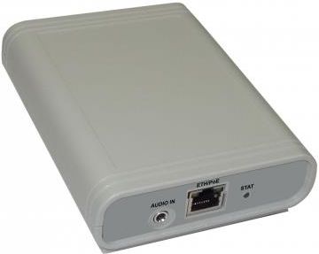 Urządzenie zamienia dostarczony sygnał analogowy np. muzykę do postaci cyfrowej i wprowadza do centrali jako zewnętrzny strumień audio. - Wejście audio JACK 3,5 mm, przełączana czułość MIC/AUX - Wyjście Ethernet RJ45 - Zasilanie - PoE Class 1 - Obudowa z tworzywa sztucznego w kolorze szarym - Wymiary 130x100x40 mm