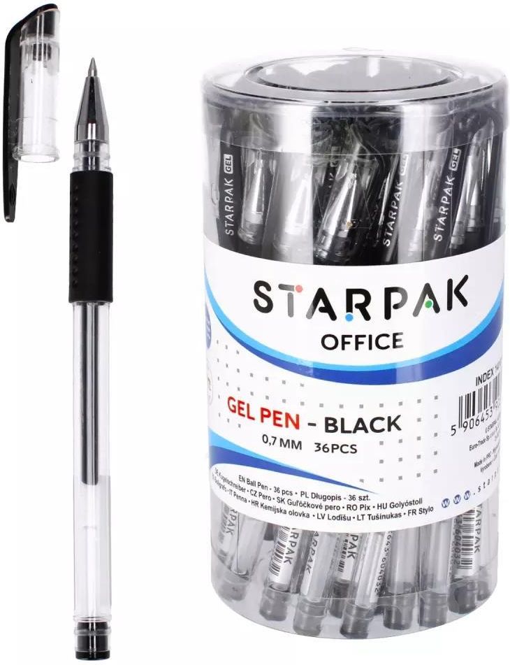 STARPAK Długopis Gelowy Z Gripem W Tubie Zestaw 36 szt 141017 Długopisy żelowe z kolekcji STARPAK dla Szkoły. Zestaw składa się z 36 długopisów z zatyczką w czarnym kolorze. Grubość linii pisania 0,5 mm. Długopisy posiadają gumowy grip, zapewniający mocny uchwyt dłoni i komfort pisania. Przezroczysta obudowa produktu umożliwia kontrolę tuszu. Wymiary/waga: wymiary opakowania (wys.x szer. x gł.) [cm]: 16x89x9 waga produktu w opakowaniu [kg]: 0,30 kg przeznaczony dla dzieci w wieku: 3+ Produkt pakowany w tubie po 36 szt