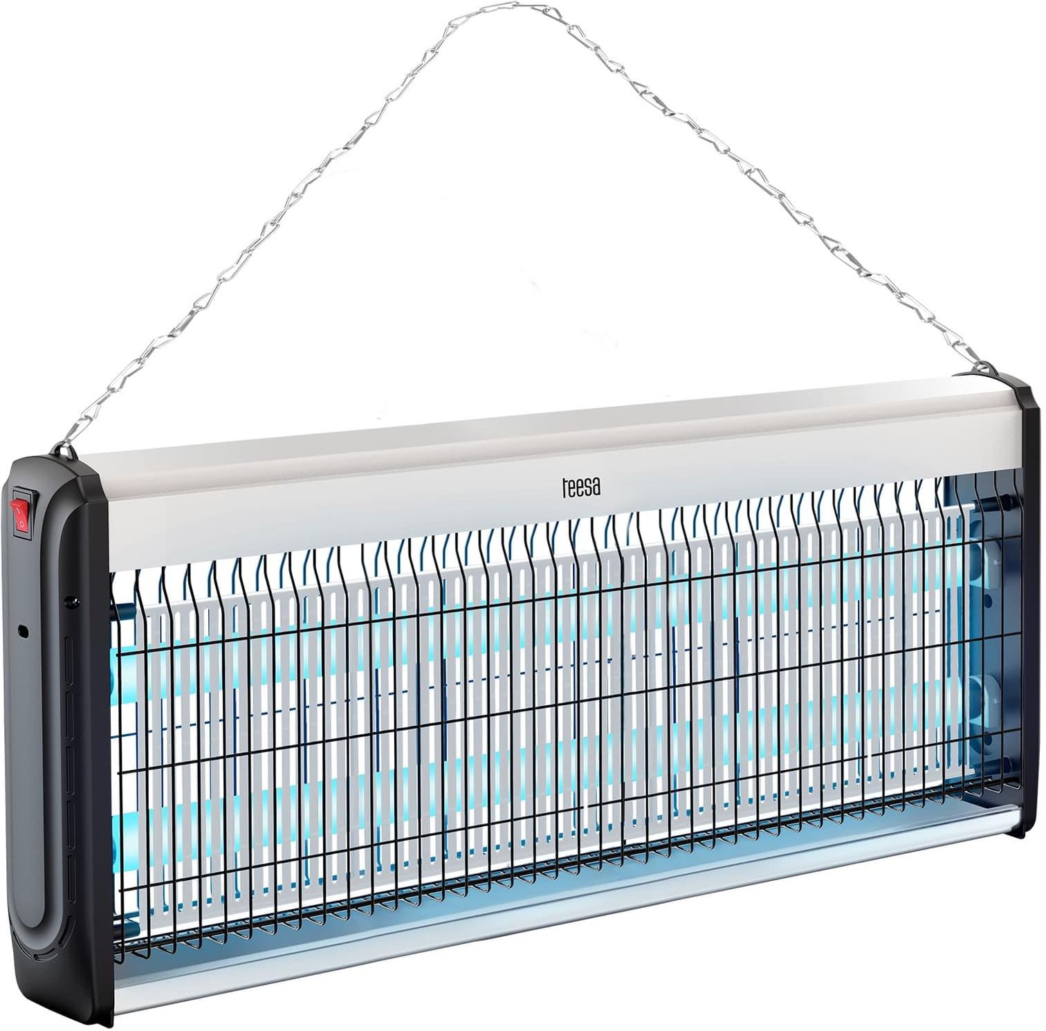 Lampa owadobójcza Teesa TSA0211 Masz dość much, komarów i innych dręczących owadów? Koniecznie wypróbuj lampę UV na owady Teesa. Model ten zaprojektowany został z myślą o najwyższej skuteczności i jest przeznaczony do pomieszczeń o dużej powierzchni – nawet do 150 m2, dlatego świetnie sprawdzi się w magazynach, sklepach czy warsztatach. Jak działa lampa owadobójcza? Zasada funkcjonowania tego typu urządzeń jest bardzo prosta. Emitowana przez lampy UV barwa światła przyciąga owady, które następnie są zabijane przez ładunek elektryczny znajdujący się w siatce. Skuteczność na poziomie Zastosowane w lampie Teesa dwie świetlówki FSL T8 o mocy 18 W każda charakteryzują się żywotnością wynoszącą nawet do 8000 godzin. Dzięki temu nie musisz się martwić częstą wymianą, a lampa będzie Cię skutecznie chronić przed owadami przez długi czas. Wytrzymała konstrukcja Lampa na muchy i komary Teesa została wykonana z wysokiej jakości materiałów, takich jak ABS i metal, co zapewnia jej wyjątkową trwałość oraz odporność na uszkodzenia. Nowoczesny design sprawia, że doskonale wpasuje się w każde wnętrze. Dla większego porządku Lampa ultrafioletowa na owady TSA0211 posiada wyjmowaną tackę na owady, co umożliwia szybkie i łatwe opróżniane. Co ważne, została ona zbudowana tak, aby móc ją postawić bądź powiesić na dołączonym do zestawy łańcuszku.