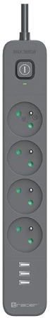 Listwa zasilająca antyprzepięciowa TRACER Power Line+ mobile ready 1.5 m (4 gniazda + 3x USB A, 5V 2,4A) Uniwersalna Listwa Zasilająca Listwa zasilająca antyprzepięciowa TRACER Power Line+ mobile ready 1.5 m to niezastąpione rozwiązanie dla każdego domu i biura. Wyposażona w cztery gniazda i trzy porty USB A (5V, 2,4A), pozwala na jednoczesne podłączenie wielu urządzeń, w tym mobilnych, bez potrzeby używania dodatkowych adapterów. Długość kabla wynosząca 1,5 metra zapewnia elastyczność i wygodę użytkowania. Bezpieczeństwo przede wszystkim TRACER Power Line+ jest wyposażona w system blokad mechanicznych, które chronią dzieci przed przypadkowym kontaktem z przewodami fazowymi. Dzięki temu możesz mieć pewność, że Twoje pociechy są bezpieczne. Listwa posiada także automatyczny wyłącznik nadprądowy, który zabezpiecza przed przeciążeniami i zwarciami. Zaawansowana ochrona Antyprzepięciowa Listwa zasilająca TRACER Power Line+ oferuje układ przeciwprzepięciowy z bardzo szybkim czasem reakcji poniżej 25 nanosekund. Chroni to podłączony sprzęt elektroniczny przed uszkodzeniami spowodowanymi nagłymi skokami napięcia. Podświetlany wyłącznik ułatwia kontrolę nad zasilaniem, nawet w ciemności. Wysoka jakość i niezawodność Obudowa listwy jest wykonana z tworzywa niepalnego, co dodatkowo zwiększa bezpieczeństwo użytkowania. Przewód sieciowy zgodny z normą VDE oraz maksymalna moc wynosząca 3680 W zapewniają stabilne i bezpieczne zasilanie. Średnia sprawność podczas pracy wynosi 80,9%, a zużycie energii w stanie bez obciążenia to tylko 0,04 W, co sprawia, że listwa jest energooszczędna. Specyfikacja techniczna Napięcie wejściowe: AC 230 V Wejściowa częstotliwość prądu przemiennego: 50/60 Hz Napięcie wyjściowe: DC 5 V Prąd wyjściowy: 2,4 A Moc wyjściowa: 12,0 W Średnia sprawność podczas pracy: 80,9% Sprawność przy niskim stanie obciążenia 10%: 77,7% Zużycie energii w stanie bez obciążenia: 0,04 W Długość przewodu (m): 1,5 Filtr przeciwzakłóceniowy (LC): nie Filtr telefoniczny: nie Ilość gniazd: 4 Kolor*: grafitowy Liczba użytkowników: Port USB: 3 x USB 2.0 Rękojmia (miesiące): 24 Układ przeciwprzepięciowy (warystor): tak Wyłącznik zasilania: tak Zabezpieczenie antyzwarciowe (bezpieczni: Tak Moc max. (W): 3680