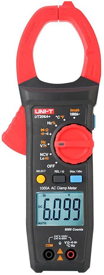 Miernik cęgowy multimetr Uni-T UT206A+ UNI-T Miernik Cęgowy Uni-T UT206A+ Miernik cęgowy Uni-T UT206A+ to wszechstronne urządzenie zaprojektowane do precyzyjnych pomiarów napięcia, prądu, rezystancji i częstotliwości, a także do testowania temperatury. Idealny dla profesjonalistów oraz zaawansowanych majsterkowiczów, UT206A+ oferuje szeroką gamę funkcji w kompaktowej i ergonomicznej formie. Szerokie możliwości pomiarowe UT206A+ umożliwia pomiar napięcia stałego do 1000 V oraz napięcia zmiennego do 1000 V. Dzięki dużemu zakresowi pomiaru prądu zmiennego (do 1000 A) oraz możliwości pomiaru rezystancji do 60 MΩ, miernik jest wszechstronny i skuteczny w różnych zastosowaniach. Urządzenie obsługuje częstotliwości od 10 Hz do 10 MHz oraz oferuje pomiar temperatury w szerokim zakresie od -40°C do 1000°C. Dodatkowo, UT206A+ jest wyposażony w funkcje testowania diod, sprawdzania ciągłości obwodu i testowania NCV (detekcja napięcia bezkontaktowa). Funkcjonalność i wygoda użytkowania Miernik cęgowy Uni-T UT206A+ charakteryzuje się automatyczną zmianą zakresów pomiarowych oraz czytelnym, podświetlanym ekranem LCD, który ułatwia odczyt wyników w różnych warunkach oświetleniowych. Funkcja zamrożenia ostatniego wskazania, automatyczne wyłączanie oraz wskaźnik niskiego poziomu baterii zwiększają komfort użytkowania i oszczędzają energię. Buzzer dodatkowo zapewnia szybkie powiadomienia o zmianach wyników pomiarów. Wytrzymałość i praktyczność Urządzenie posiada rozstaw szczęk o średnicy 45 mm, co umożliwia wygodne pomiary szerokich przewodów. Zasilane dwoma bateriami AAA, miernik jest lekki i łatwy w obsłudze. Jego wymiary (420 x 290 x 280 mm) oraz waga (235 g) sprawiają, że jest wygodny w codziennym użytkowaniu i transportowaniu. W zestawie znajdują się przewody pomiarowe oraz etui, które ułatwiają przechowywanie i transport miernika. ----------- ZAKRESY POMIAROWE ----------- Napięcie stałe DC: 1000 V ±(0,7%+3) Napięcie zmienne AC: 1000 V ±(1%+2) Natężenie prądu zmiennego AC: 1000 A ±(1,5%+5) Rezystancja: 40 MOhm / 60 MOhm ±(1%+2) Częstotliwość: 10 Hz ~ 10 MHz ±(0,1%+4) Współczynnik wypełnienia: 0,1% - 99,9% Pomiar temperatury: -40°C ~ 1000°C Test diod Sprawdzanie ciągłości obwodu Test NCV ----------- FUNKCJE DODATKOWE ----------- Automatyczna zmiana zakresów pomiarowych Podświetlany ekran LCD Zamrożenie ostatniego wskazania Automatyczne wyłączenie Buzzer Wskaźnik niskiego poziomu baterii Maksymalny odczyt: 6099 ----------- CECHY OGÓLNE ----------- Rozstaw szczęk: 45 mm Impedancja wejściowa napięcia stałego: ok. 10 MOhm Liczba pomiarów: 3/s Zasilanie: 2x bateria AAA Wymiary produktu: 420 x 290 x 280 mm Waga produktu: 235 g W zestawie: przewody pomiarowe, etui Miernik Cęgowy Uni-T UT206A+ Miernik cęgowy Uni-T UT206A+ to wszechstronne urządzenie zaprojektowane do precyzyjnych pomiarów napięcia, prądu, rezystancji i częstotliwości, a także do testowania temperatury. Idealny dla profesjonalistów oraz zaawansowanych majsterkowiczów, UT206A+ oferuje szeroką gamę funkcji w kompaktowej i ergonomicznej formie. Szerokie możliwości pomiarowe UT206A+ umożliwia pomiar napięcia stałego do 1000 V oraz napięcia zmiennego do 1000 V. Dzięki dużemu zakresowi pomiaru prądu zmiennego (do 1000 A) oraz możliwości pomiaru rezystancji do 60 M?, miernik jest wszechstronny i skuteczny w różnych zastosowaniach. Urządzenie obsługuje częstotliwości od 10 Hz do 10 MHz oraz oferuje pomiar temperatury w szerokim zakresie od -40°C do 1000°C. Dodatkowo, UT206A+ jest wyposażony w funkcje testowania diod, sprawdzania ciągłości obwodu i testowania NCV (detekcja napięcia bezkontaktowa). Funkcjonalność i wygoda użytkowania Miernik cęgowy Uni-T UT206A+ charakteryzuje się automatyczną zmianą zakresów pomiarowych oraz czytelnym, podświetlanym ekranem LCD, który ułatwia odczyt wyników w różnych warunkach oświetleniowych. Funkcja zamrożenia ostatniego wskazania, automatyczne wyłączanie oraz wskaźnik niskiego poziomu baterii zwiększają komfort użytkowania i oszczędzają energię. Buzzer dodatkowo zapewnia szybkie powiadomienia o zmianach wyników pomiarów. Wytrzymałość i praktyczność Urządzenie posiada rozstaw szczęk o średnicy 45 mm, co umożliwia wygodne pomiary szerokich przewodów. Zasilane dwoma bateriami AAA, miernik jest lekki i łatwy w obsłudze. Jego wymiary (420 x 290 x 280 mm) oraz waga (235 g) sprawiają, że jest wygodny w codziennym użytkowaniu i transportowaniu. W zestawie znajdują się przewody pomiarowe oraz etui, które ułatwiają przechowywanie i transport miernika.