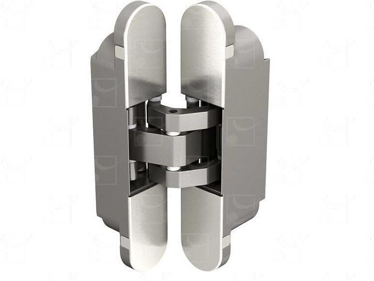"Niewidoczny" zawias do drzwi - ukryty wewnątrz panelu. Znajduje się w jednej płaszczyźnie z powierzchnią drzwi. Wzmocniony - dedykowany do intensywnego ruchu (miejsca publiczne). Nośność 75 kg (dla 3 sztuk). Regulacja 3D Ø23 mm Masa 0,74 kg