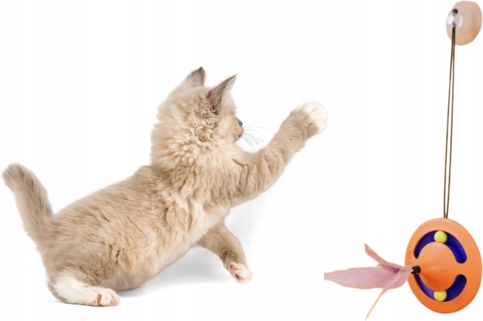 Zabawka Dla Kota Na Sznurku Z Piórkami I Przyssawką Pomarańczowa Świecie