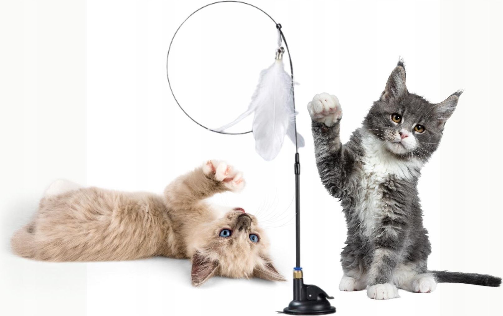 Zabawka Interaktywna Dla Kota Wędka Z Piórkami I Przyssawką Zabawka Ruchoma Świecie
