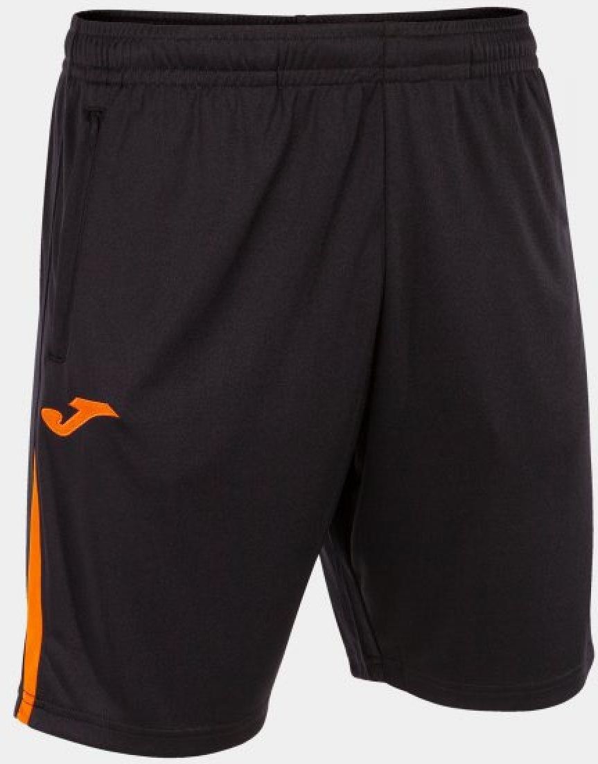 CHAMPIONSHIP VII BERMUDA BLACK ORANGE Właściwości Spodenki Joma dla mężczyzn i chłopców Talia elastyczna z wszytym sznurkiem Boczne kieszonki na zamek Lekka tkanina Kontrastowe wzory kolorystyczne Swoboda ruchów 100% Poliester