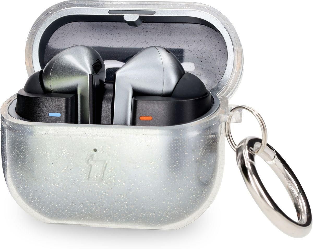 Bizon Elastyczne etui z karabińczykiem Case Headphone Clear do Samsung Galaxy Buds 3/3 Pro przeźroczysto-brokatowe Świerzawa