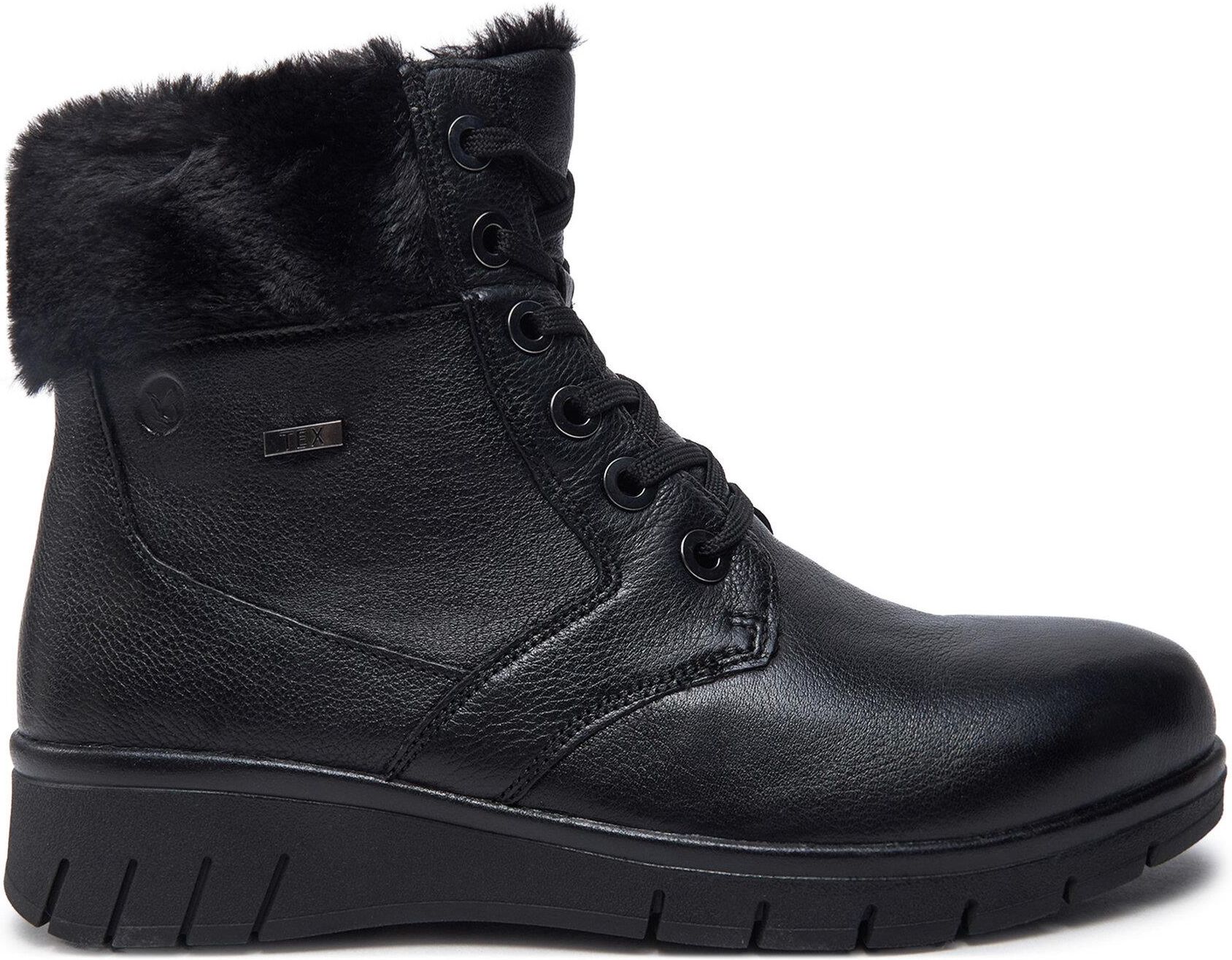 Skóra naturalna/licowa Kolor: Black Nappa Wyjmowana wkładka Powłoka wodoodporna Wysokość podeszwy: 4 cm Wysokość całkowita cholewki: 15 cm Tęgość: H Odporność na poślizg Super przyczepność Poznaj buty z Blue Grip Doskonała przyczepność do podłoża i znacznie zwiększona antypoślizgowość dzięki nowej konstrukcji podeszwy. Specjalnie opracowana technologia membran w połączeniu z wklęsłymi wkładkami GRIP zapewnia lepszą przyczepność na różnych powierzchniach. Chód jest stabilizowany dzięki temu, że elastyczne, innowacyjne elementy dostosowują się do różnych warunków podłoża. Poczujesz się pewniej nawet na lodzie! Patent europejski: 3 501 320 Cyrkulacja powietrza i tłumienie wstrząsów Poznaj buty z Airmotion AIRMOTION to skrót od AIR and MOTION. W opatentowanej wkładce wewnętrznej CAPRICE aż do 300 półkul z powietrzem zapewnia jego optymalną cyrkulację i idealny klimat dla stóp, na każdym kroku. Powietrze w strukturze plastra miodu zapewnia doskonałą izolację termiczną. Kolejny plus: sprężyste działanie kulistych elementów odciąża całe ciało i zapewnia amortyzację podczas chodzenia.