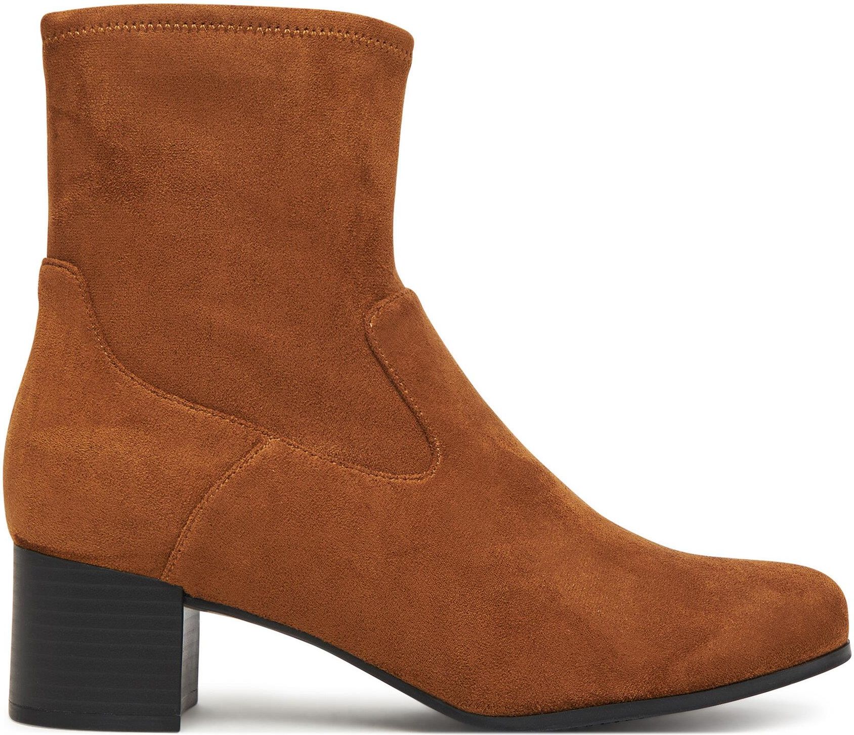 BOTKI CAPRICE Model : 25316-41 044 BLACK STRETCH Producent : CAPRICE (Niemcy) botki w kolorze brązowym z elastycznej tkaniny stretchowej imitującej zamsz lekko ocieplone w okolicy stopy zapinane na zamek na stabilnym obcasie wys.5 cm wyposażone w komfortowe amortyzujące i wyjmowane wkładki …