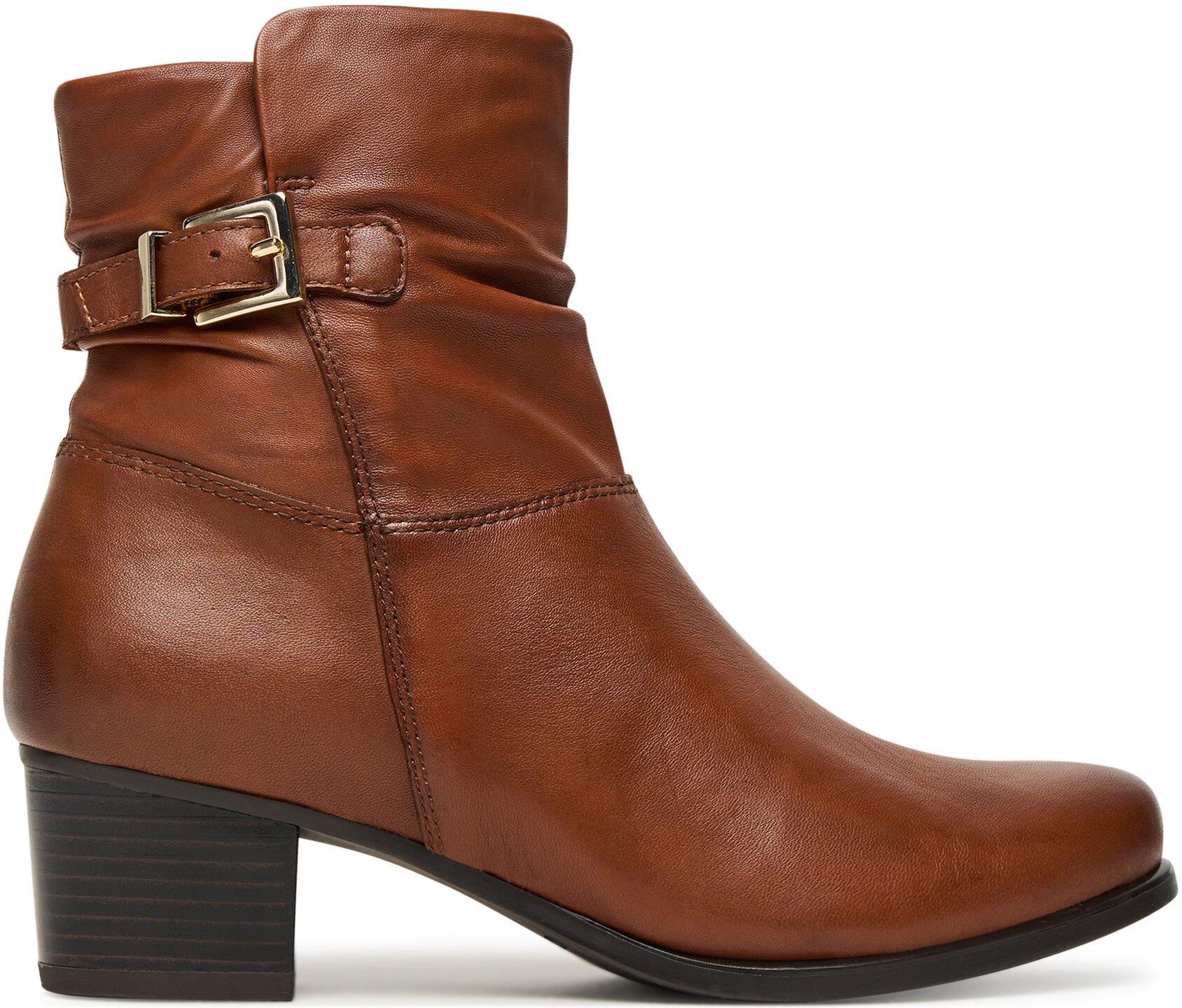 Dodaj do swojej garderoby elegancję i komfort dzięki damskim botkom marki Caprice! Wykonane z wysokiej jakości skóry naturalnej licowej, te buty łączą styl z funkcjonalnością. Ocieplenie oraz wkładka z polaru zapewniają ciepło i wygodę nawet w chłodniejsze dni. Słupek dodaje szyku, a jednocześnie gwarantuje stabilność podczas chodzenia. To idealny wybór na co dzień i na wyjątkowe okazje – postaw na botki Caprice i ciesz się modnym wyglądem bez kompromisów!