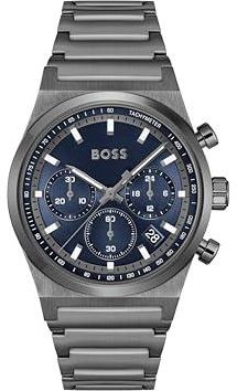 Precyzyjny mechanizm chronografu z datownikiem Zegarek BOSS Candor Chrono ma niezawodny mechanizm chronografu z funkcją daty, łączącą precyzję pomiaru czasu z codzienną praktycznością. Wyrafinowane wymiary obudowy i kształt Okrągła obudowa 41 mm z eleganckim profilem 10,35 mm zapewnia nowoczesny i wszechstronny wygląd, ucieleśniając charakterystyczną elegancję rzemiosła BOSS Wyrafinowana okrągła szczotkowana tarcza Okrągła szczotkowana niebieska tarcza jest akcentowana polerowanymi, pomalowanymi lumi indeksami, oferując wyjątkową przejrzystość i odważny wyraz dla współczesnego mężczyzny. Stylowa bransoletka ze stali nierdzewnej z wszechstronnymi opcjami. Ten model BOSS Candor Chrono ma wytrzymałą bransoletkę ze stali nierdzewnej, która zapewnia polerowany, nowoczesny wygląd. Kolekcja obejmuje również wariacje ze skórzanymi paskami, oferując dodatkowe możliwości stylizacji na każdą okazję. Wodoodporność: 5ATM Można nosić podczas kąpieli lub pływania, ale nie nadaje się do nurkowania.