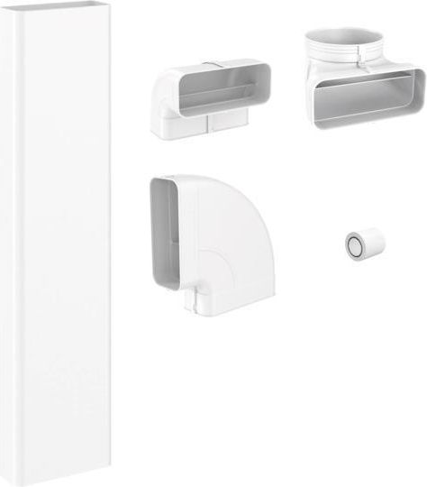 Miele DFKS-R  Zestaw kanałów płaskich do KMDA 7272/7473/7676/7876 Do indywidualnego prowadzenia powietrza  1x kolano (DFK-BV 90) + 1x kolano (DFK-BH-90) + 1x1 m (DFK-R1000) 1x adapter (DFK-AK90) + 1x taśma uszczelniająca (DFK-DB) Przestrzegać przepisów budowlanych specyficznych dla kraju …