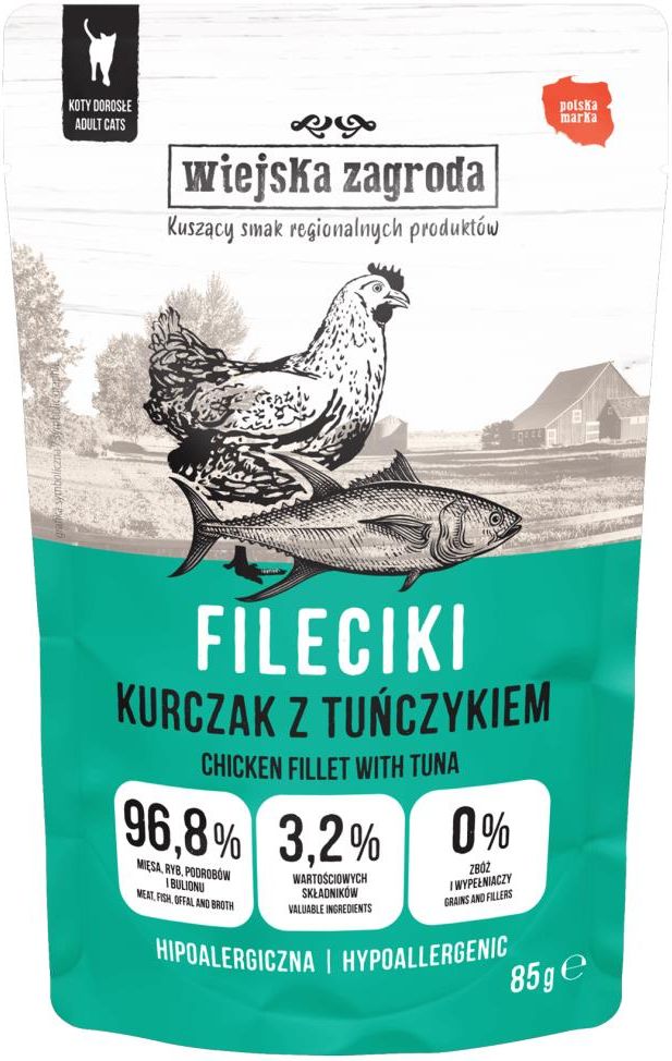 Wiejska Zagroda Wiejska Zagroda Bezzbożowa Mokra Karma Dla Kota Fileciki Kurczak Z Tuńczykiem 85G Świerzawa